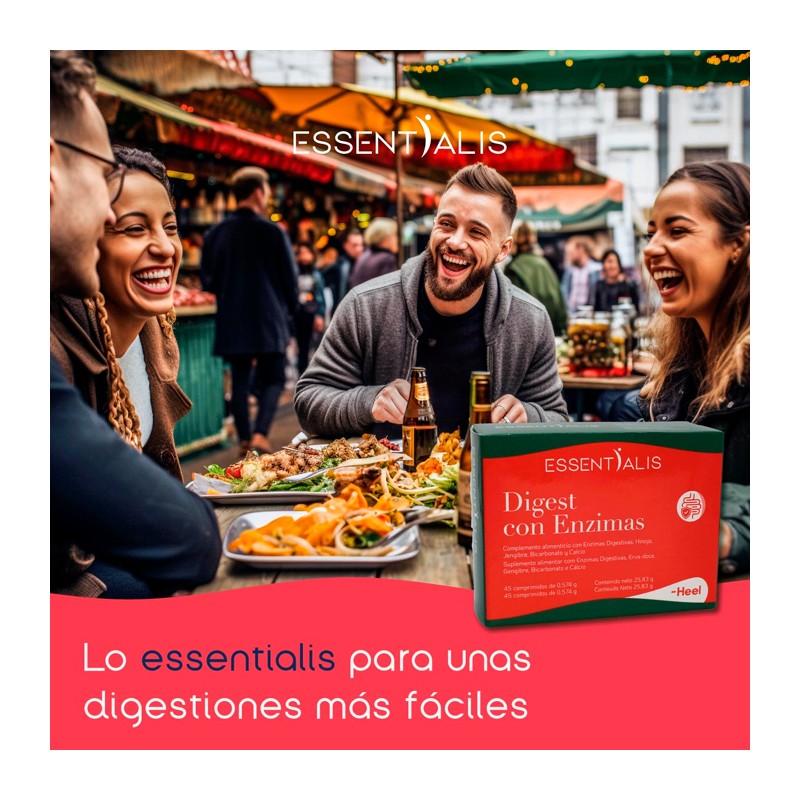 Digest con Enzimas Essentialis Heel es el aliado perfecto para disfrutar de las comidas sin molestias digestivas.