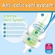Biberón anticólico para reducir los cólicos, reflujos, eructos y gases. Sistema de ventilación interna: el aire entre en el cuello del biberón y pasa directamente al sistema de ventilación interna. El aire pasa a través del tubo de ventilacion hacia el fondo del biberón sin entrar en contacto con la leche. El sisteme de ventilación evita el contacto del aire con la lehce, la presión provocada por el vacío y el colapso de la tetina.