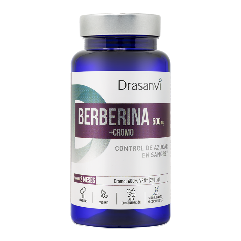 Drasanvi Berberina 500 mg + Cromo combina dos ingredientes activos conocidos por sus propiedades relacionadas con el control del metabolismo y el bienestar general.