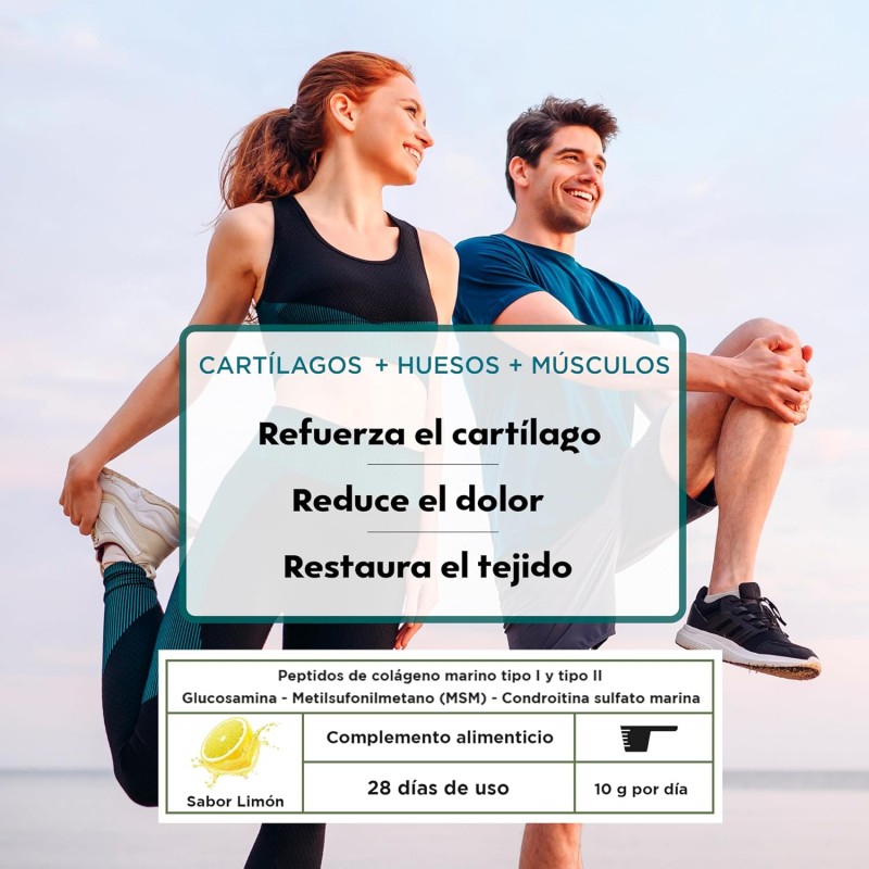 Drasanvi Collmar Articular Colágeno Marino Hidrolizado Sabor Limón 280 g en polvo contribuye a la salud de articulaciones, tendones y piel, proporcionando colágeno de fácil absorción.