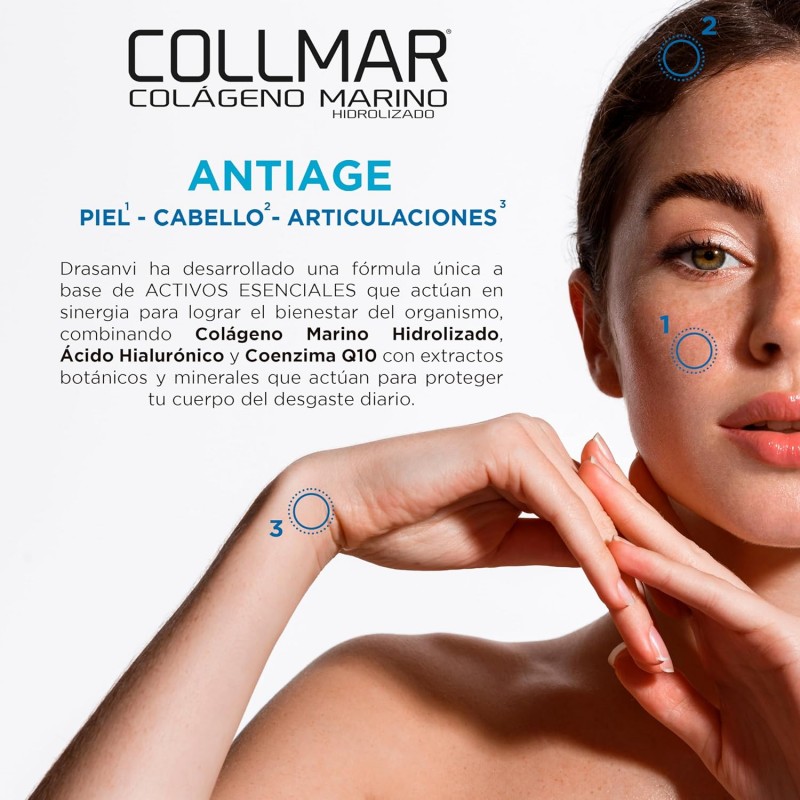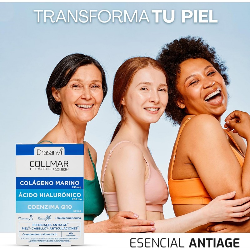 Con Drasanvi Collmar Colágeno Marino , disfruta de una piel más radiante, hidratada y firme , al mismo tiempo que cuidas tus articulaciones y cabello. ¡El complemento ideal para la belleza y el bienestar desde el interior!