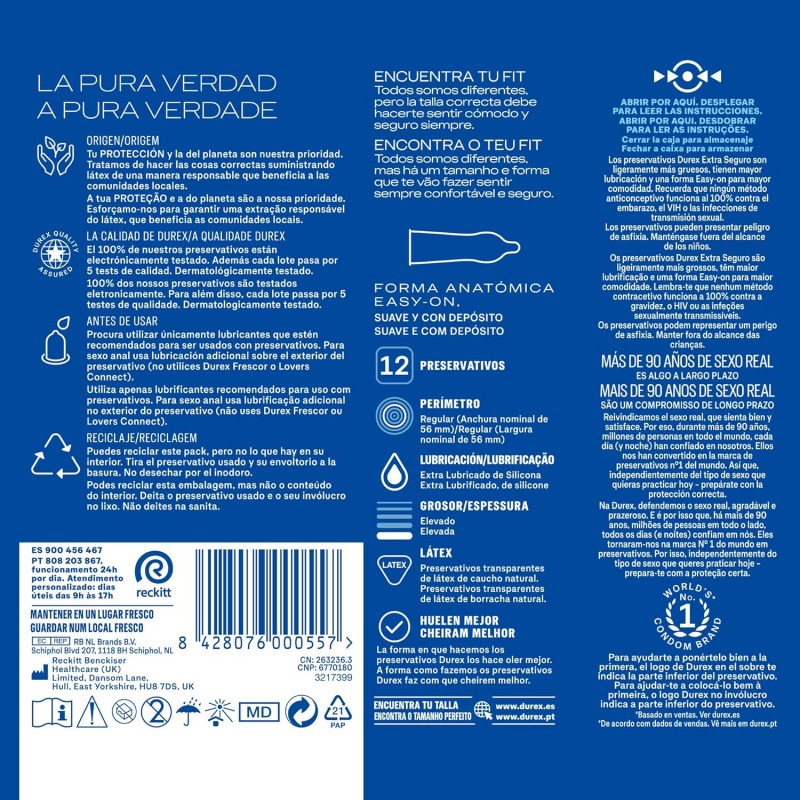 DUREX EXTRA SEGURO REGULAR FIT 12 PRESERVATIVOS