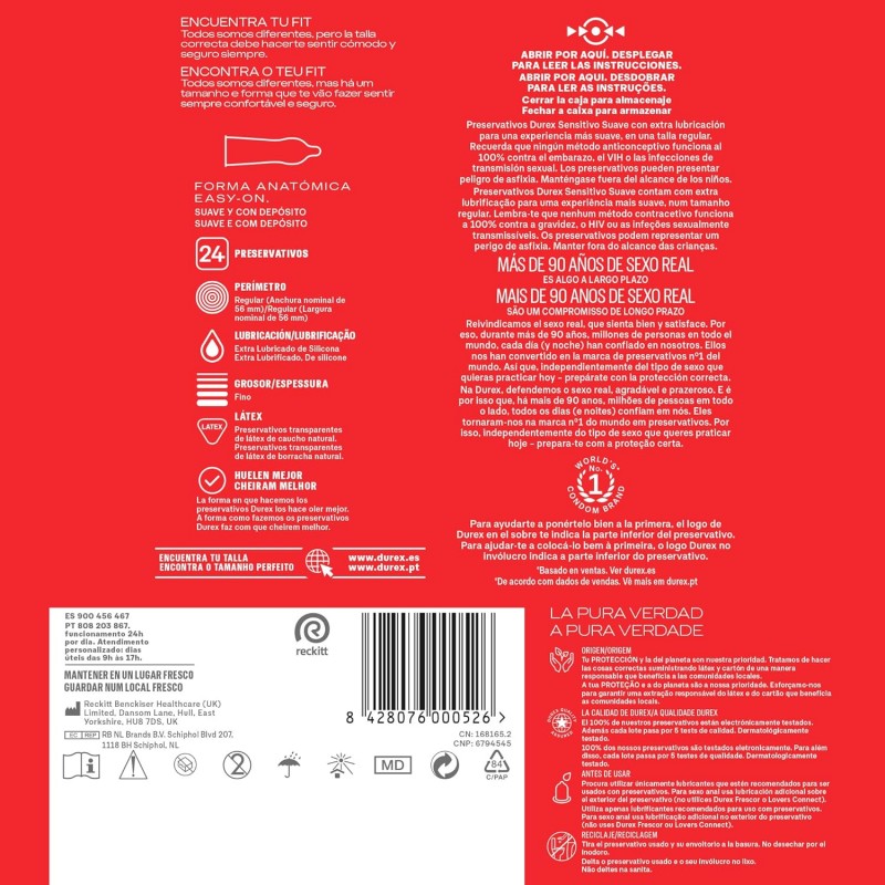 DUREX SENSITIVO SUAVE REGULAR FIT 24 PRESERVATIVOS