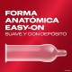 Producto sanitario clase IIbMaterial: Látex naturalColor: TransparenteForma: Anatómica ("easy-on")Superficie: LisaDepósito: SíAnchura nominal: 56 mmGrosor:FinoLubricado: Sí (sin espermicida)Propiedades: Mayor sensibilidad. Fácil y cómodo de poner.