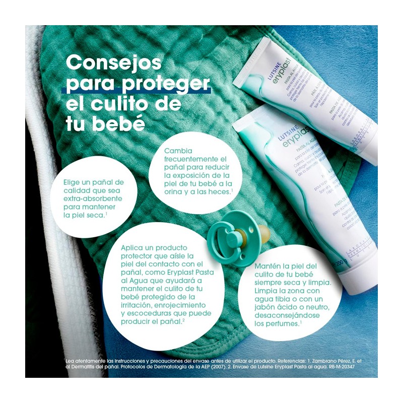 E45 Lutsine Eryplast Pasta al Agua protege y calma la delicada piel del bebé, previniendo y aliviando las irritaciones causadas por el pañal.