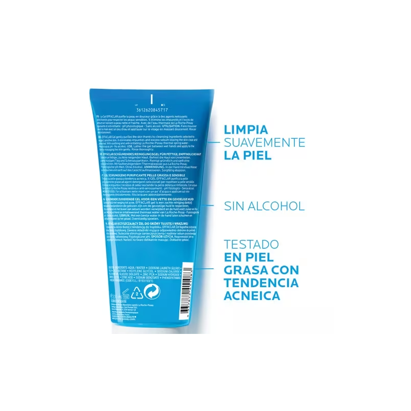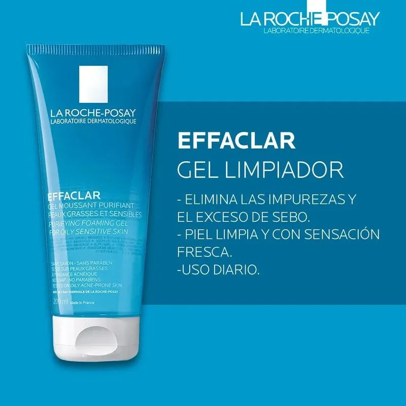 Más informaciónEl La Roche-Posay Effaclar Gel Limpiador Purificante está formulado para limpiar eficazmente la piel sin agredirla. Su textura en gel elimina impurezas, suciedad y exceso de grasa, ayudando a mantener los poros limpios y la piel equilibrada.