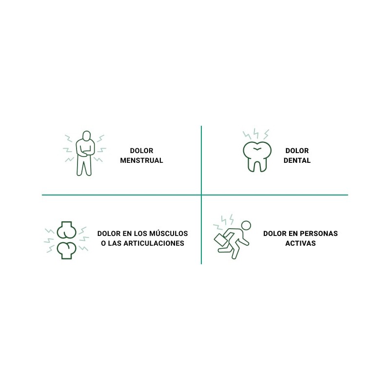- Dolor de intensidad leve o moderada, tal como [DOLOR OSTEOMUSCULAR], [DISMENORREA], [ODONTALGIA].
