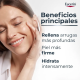 Su fórmula triple efecto actúa rellenando las líneas de expresión y arrugas profundas, estimulando más de un 200% la síntesis de ácido hialurónico y más de un 49% la síntesis de colágeno. Además, protege la degradación de ácido hialurónico en más de un 50%. Con alta protección frente a la radiación solar (FPS 30 + UVA).