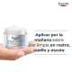En su fórmula contiene ácido hialurónico de alto y bajo peso molecular, glicina saponina, enoxolona y fps30. Apto en todo tipo de pieles.