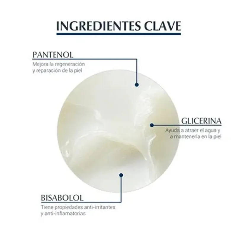Esta formulación sin agua, a base de parafina, facilita la curación de la piel de manera que se acelere el proceso, al crear un entorno ideal, para la curación de heridas. Se crea rápidamente una barrera semipermeable y protectora sobre la piel que conserva el índice normal de vapor de agua, con lo que se mantiene húmeda la zona dañada con el fin de acelerar su regeneración. Esta barrera protectora también absorbe y retiene los exudados naturales dela herida en el proceso de curación. Los ingredientes activos pantenol y bisabolol también tienen una capacidad clínicamente comprobada para acelerar la regeneración de la piel. También contiene glicerina para hidratar y fortalecer la barrera cutánea.