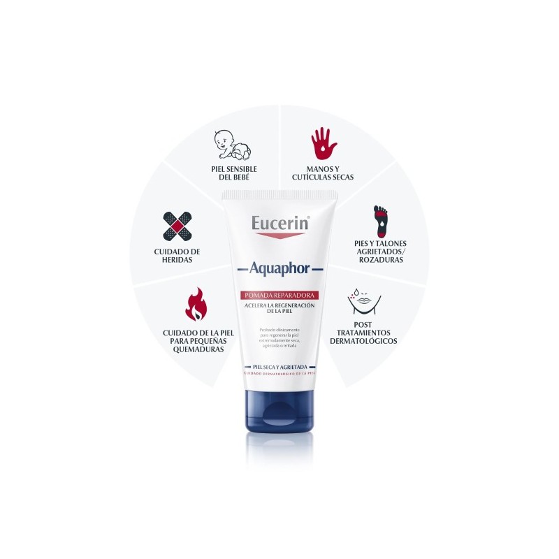 Eucerin Aquaphor Pomada Reparadora 40 g es un tratamiento ideal para la piel extremadamente seca, irritada o dañada. Su fórmula sin agua crea una barrera protectora que acelera la regeneración de la piel y proporciona alivio inmediato.