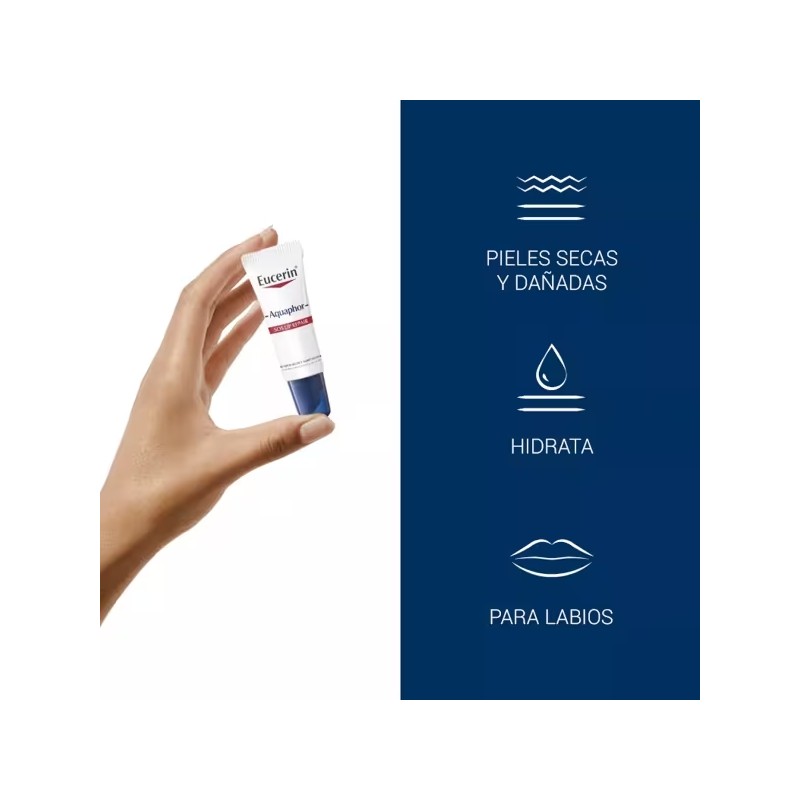 Más informaciónEl reparador labial de Eucerin Aquaphor SOS ha sido formulado específicamente para tratar labios extremadamente secos, irritados o agrietados. Su acción intensiva ayuda a reparar la piel desde la primera aplicación, proporcionando una sensación inmediata de alivio y confort.