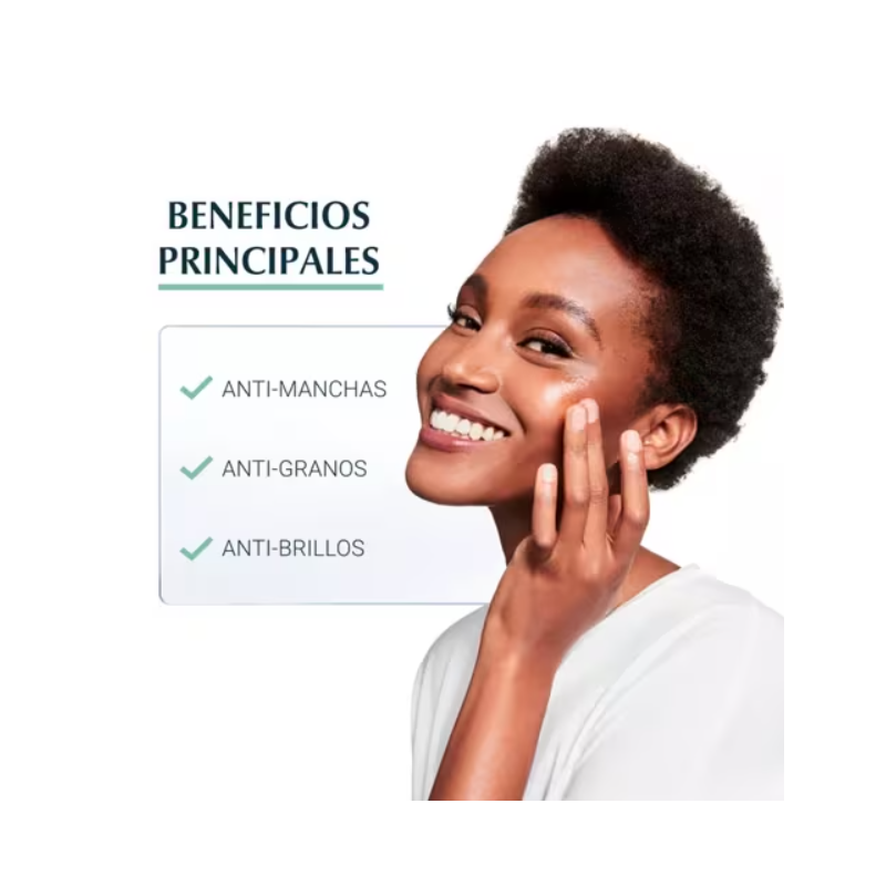 Sérum triple efecto anti-manchas, anti-imperfecciones y anti-brillos. Es un producto diseñado para el cuidado de la piel, especialmente formulado para controlar el exceso de grasa y minimizar la apariencia de poros dilatados. Puede ser utilizado para mantener la piel con un aspecto mate y reducir el brillo no deseado.