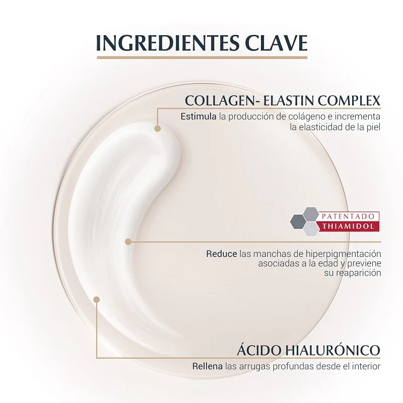 Crema facial de día que combina antiedad y protección solar, ayudando a reducir arrugas y mejorar la elasticidad de la piel.