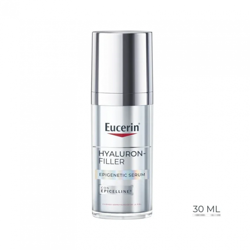 Más informaciónEl Eucerin Hyaluron-Filler Epigenetic Serum 30 ml combina ácido hialurónico de alto y bajo peso molecular con resveratrol y gluco-glicerol, activos que hidratan intensamente, rellenan arrugas y protegen la piel de los daños ambientales. Su fórmula ligera se absorbe rápidamente, estimulando la regeneración natural de la piel y ayudando a mantener un rostro más firme, liso y radiante. Ideal para pieles a partir de los 30 años o con primeros signos de envejecimiento.