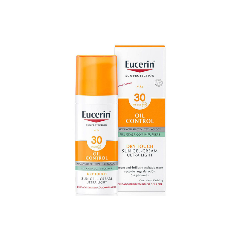 Eucerin Sun Protection Oil Control SPF30 Gel-Crema está especialmente formulado para pieles grasas o con tendencia acneica que necesitan protección solar diaria sin sensación grasa. Su innovadora fórmula Oil Control regula la producción de sebo, dejando la piel mate y con un aspecto fresco durante todo el día.