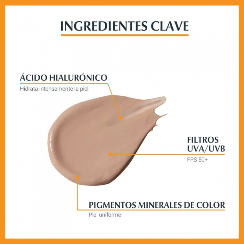 Protección solar SPF 50+ con color medio. Corrige imperfecciones, hidrata y reduce arrugas. Acabado natural y luminoso.