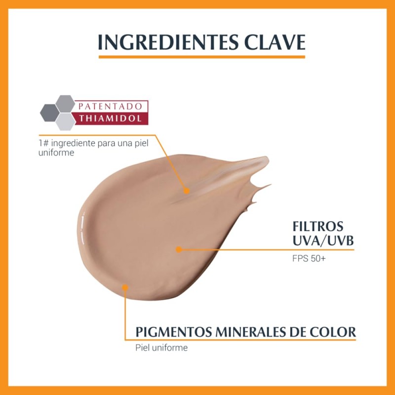 Su fórmula incorpora filtros solares de amplio espectro UVA/UVB que protegen la piel frente al daño solar, uno de los principales factores responsables de la hiperpigmentación. Además, su textura fluida y ligera se adapta fácilmente a la piel, aportando un tono medio natural que ayuda a disimular imperfecciones y a conseguir un aspecto más uniforme desde la primera aplicación.