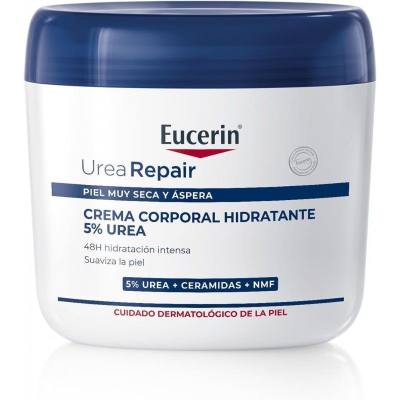 Eucerin UreaRepair PLUS Bálsamo Nutritivo ofrece un cuidado intensivo para pieles muy secas, ásperas o con tendencia a la descamación. Su fórmula avanzada con urea, ceramidas y factores naturales de hidratación (NMFs) repara la barrera cutánea, reduce la pérdida de agua y proporciona una hidratación inmediata que se prolonga hasta 48 horas.