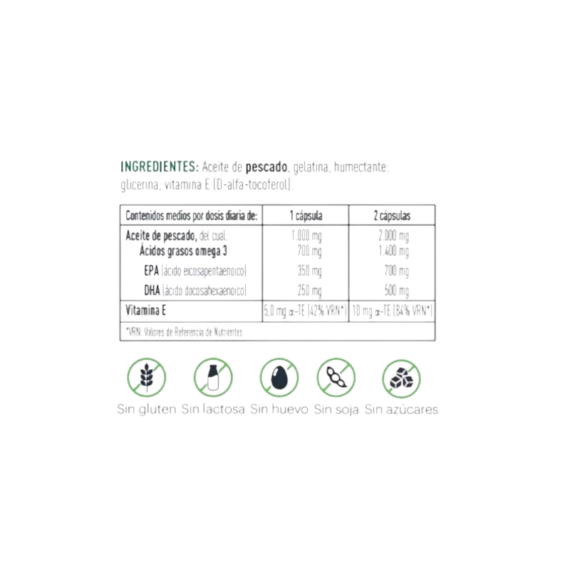 ✔️ Ácidos grasos Omega-3 (EPA y DHA): contribuyen a la salud cardiovascular y función cerebral.