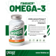 Suplemento de ácidos grasos Omega-3 (EPA y DHA) + Vitamina E para adultos, que contribuye a la salud cardiovascular y bienestar general.