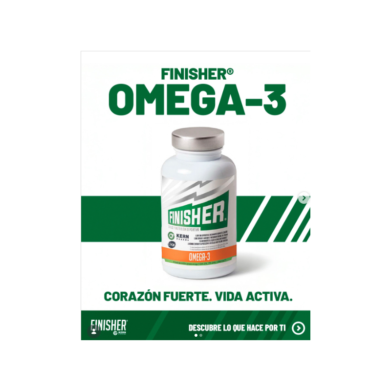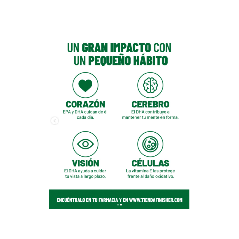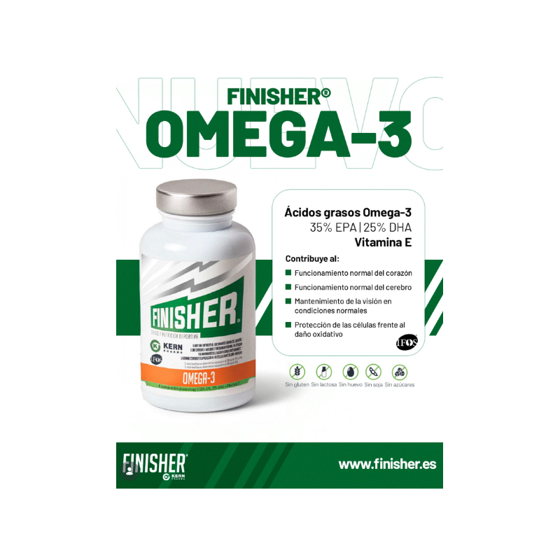Más informaciónFinisher Omega-3 60 cápsulas es un suplemento diseñado para adultos que desean complementar su dieta con ácidos grasos esenciales EPA y DHA y vitamina E. Los ácidos grasos Omega-3 ayudan a mantener la salud del corazón, la función cerebral y la visión, mientras que la vitamina E aporta acción antioxidante, protegiendo las células frente al estrés oxidativo. Con 1 o 2 cápsulas al día, es fácil de incorporar a la rutina diaria para favorecer el bienestar general y mantener un estilo de vida saludable