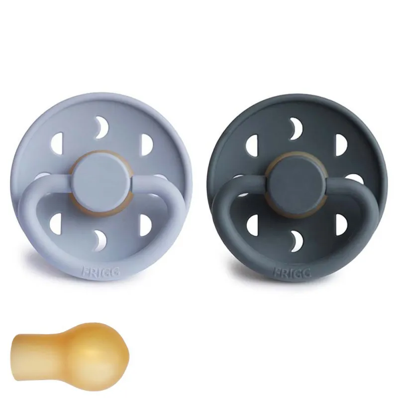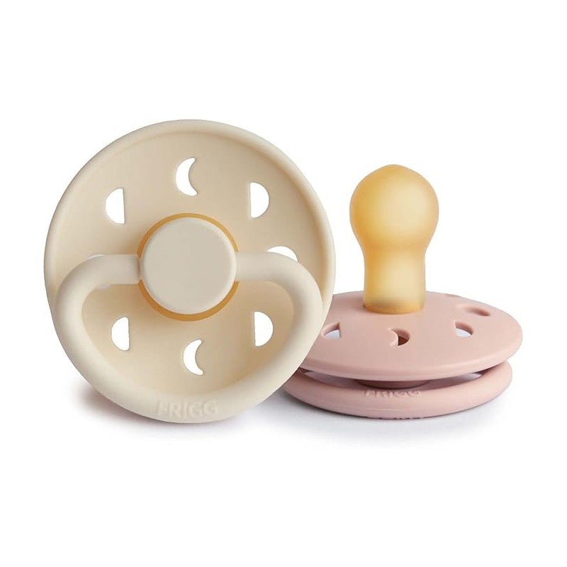 El Pack de 2 chupetes Frigg Moon de látex, talla 1 (0-6 meses), combina suavidad, seguridad y un diseño elegante inspirado en la luna, perfecto para acompañar a tu bebé en sus primeros meses de vida.
