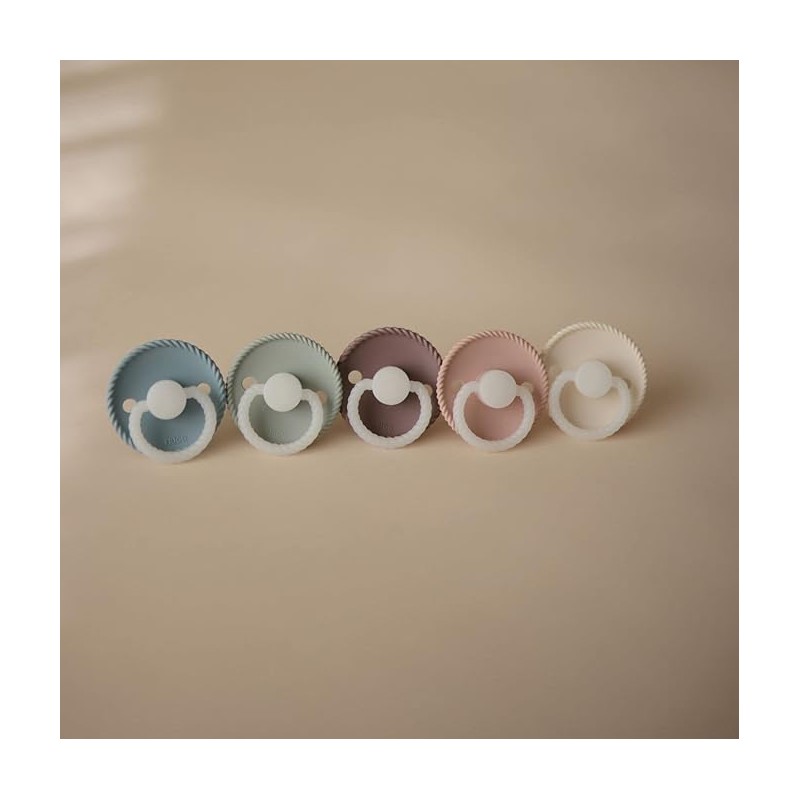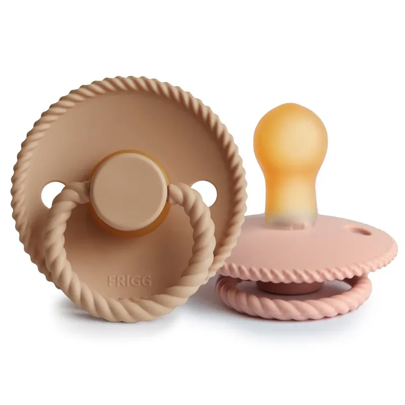 El Pack de 2 chupetes Frigg Rope de látex, talla 2 (6-18 meses) combina seguridad, confort y un diseño divertido con motivos de cuerda, pensado para acompañar a tu bebé en su crecimiento.