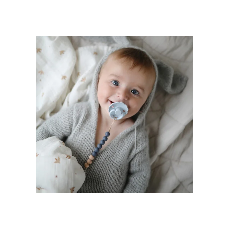 El Pack de 2 chupetes Frigg Daisy de silicona, talla 2 (6-18 meses) combina comodidad, seguridad y un diseño divertido para acompañar el desarrollo de tu bebé.