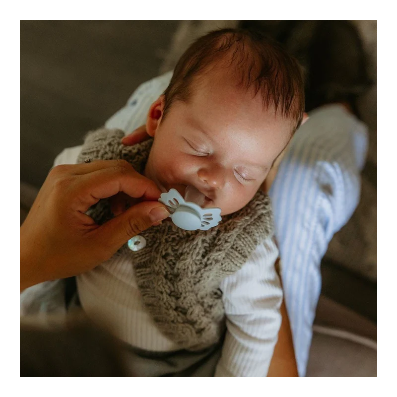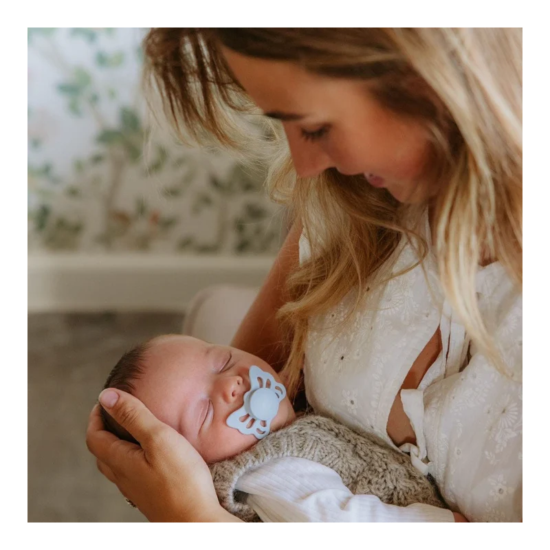 El Pack Frigg Powder Blue de 4 chupetes mixtos de silicona y látex, talla 1 (0-6 meses) combina suavidad, seguridad y variedad para cuidar y calmar a tu bebé desde sus primeros días.