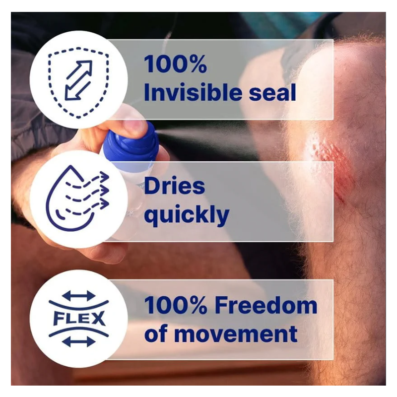 No utilizar en la cara. Evitar el contacto con los ojos y membranas mucosas. No usar en heridas infectadas, profundas o sangrantes o quemaduras. Se puede sentir un ligero escozor en la aplicación. Si aparece irritación, descontinuar su uso. No inhalar el spray. Aerosol extremadamente inflamable.