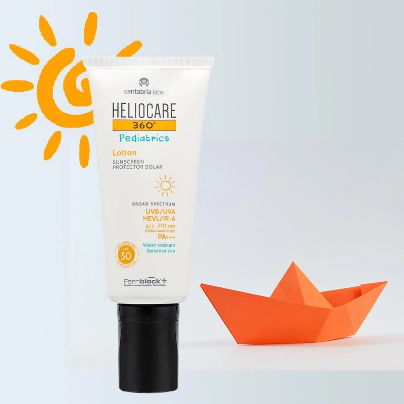 Heliocare 360º Pediatrics Loción SPF 50+ es un fotoprotector en textura loción ultra ligera y de rápida absorción, desarrollado para la protección diaria de la piel sensible, reactiva o atópica de los más pequeños.