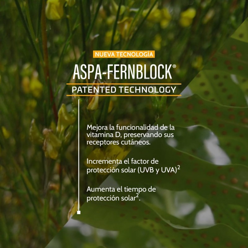 Formulado con la tecnología Fernblock®+, antioxidantes y activos reparadores del ADN, protege frente a UVB, UVA, luz azul y radiación infrarroja-A, mientras que su textura water-gel ultraligera se absorbe rápidamente sin dejar residuo graso. Aporta una hidratación prolongada hasta por 48 horas y una sensación de frescor que lo hace perfecto para la rutina diaria.