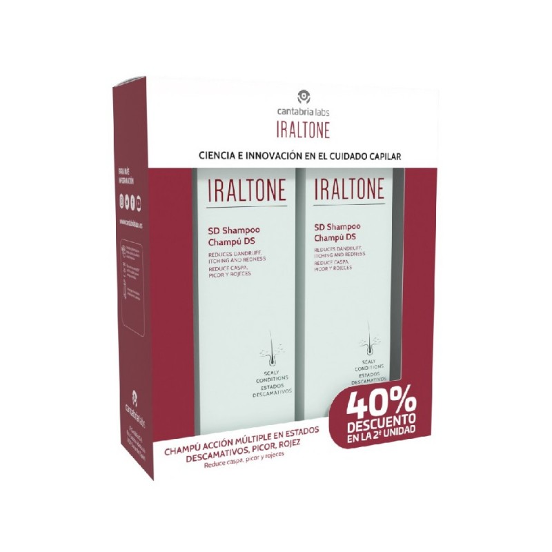 Más informaciónIraltone Duplo Champú DS está formulado para combatir eficazmente los síntomas asociados a la dermatitis seborreica y la caspa severa. Su fórmula combina agentes limpiadores suaves con ingredientes activos que ayudan a reducir la descamación, el enrojecimiento y el picor, restaurando el equilibrio natural del cuero cabelludo.