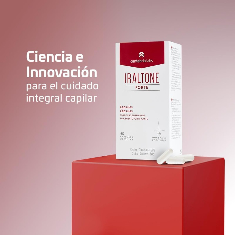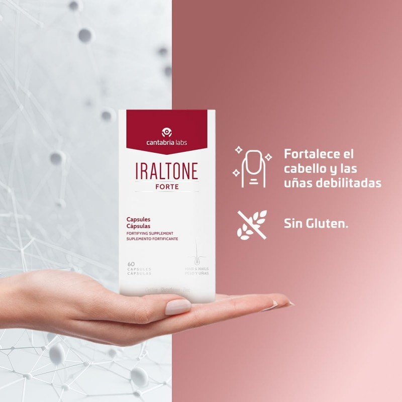 IRALTONE FORTE 60 CÁPSULAS es un complemento alimenticio diseñado para fortalecer el cabello y las uñas desde el interior, aportando una combinación exclusiva de vitaminas, minerales y antioxidantes esenciales para mantener su salud y vitalidad.