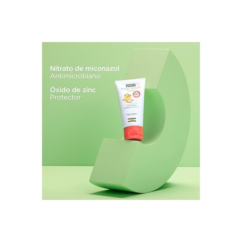 Pomada para la dermatitis del pañal reparadora que contiene nitrato de miconazol, un ingrediente con propiedades antimicrobianas, que previene la proliferación de agentes infecciosos, reparando la piel, y proporcionando un estado de confort inmediato. Además, crea una barrera protectora que aísla y protege la piel haciendo que la piel se recupere tras irritaciones o escoceduras.