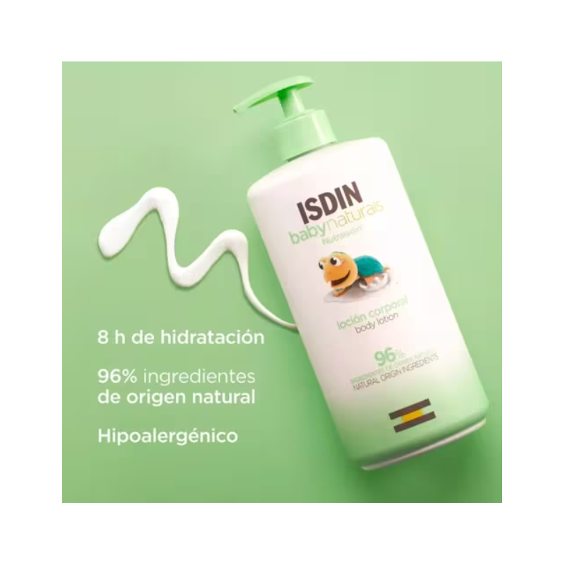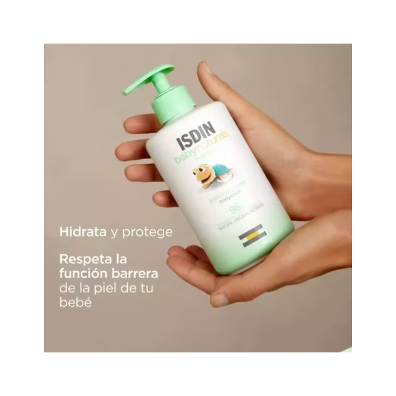 ISDIN Baby Naturals NutraISDIN Loción Corporal está especialmente formulada para el cuidado diario de la piel del bebé. Su fórmula con 96 % de ingredientes de origen natural proporciona una hidratación suave y duradera, respetando el equilibrio natural de la piel.