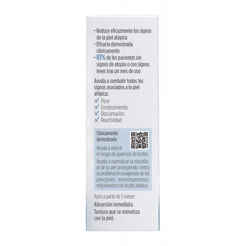 Además, contiene ingredientes emolientes e hidratantes que alivian el picor, reducen la sequedad, y previenen el enrojecimiento y la descamación típicos de la piel atópica en el rostro. Su textura ligera, no grasa y de alta tolerancia es ideal para el uso diario.