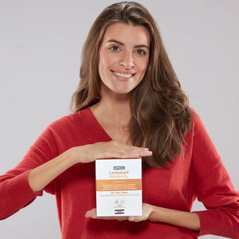 Más informaciónISDIN Lambdapil Hair Density 180 Cápsulas es un tratamiento oral desarrollado por ISDIN para estimular el crecimiento capilar y reducir la caída del cabello desde el interior. Su fórmula exclusiva nutre el folículo piloso, favorece la formación de queratina y fortalece la estructura capilar, ayudando a conseguir un cabello más fuerte, denso y saludable.