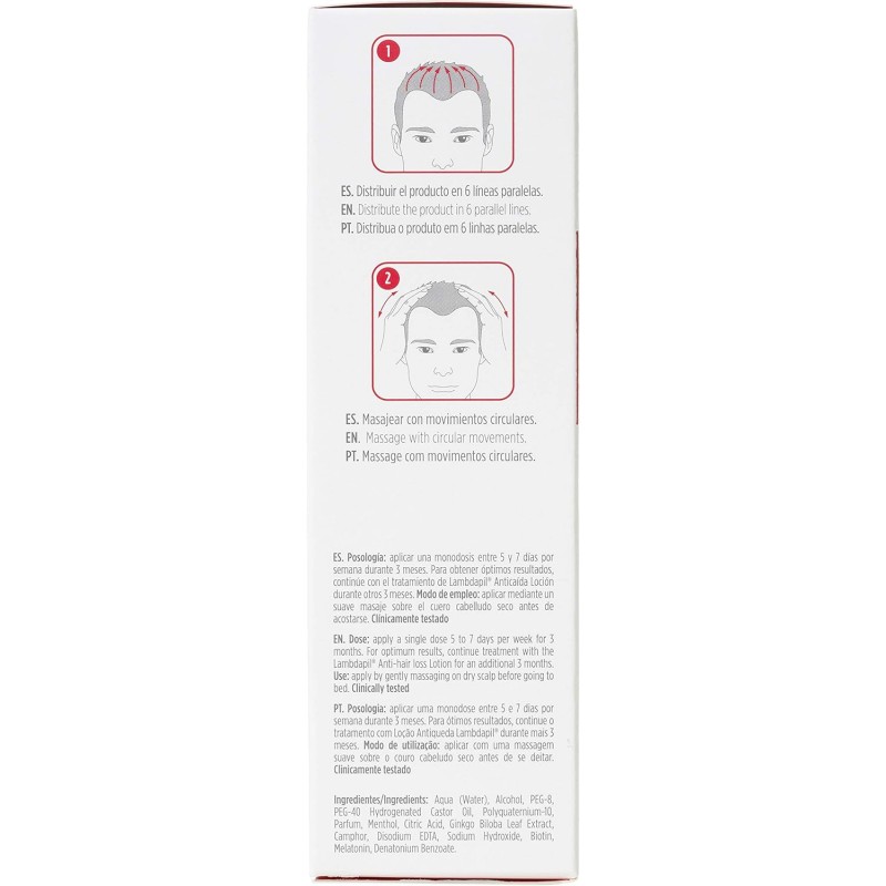 Pack de 2 envases de Lambdapil Loción 20 monodosis de 3ml (2ª unidad al 40%) que contribuye a frenar la caída del cabello favoreciendo su crecimiento. Estimula y favorece el crecimiento de nuevos cabellos, con su fórmula patentada y clínicamente testado.