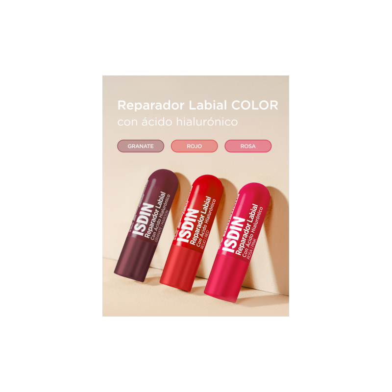 Más informaciónISDIN Reparador Labial Stick con color rojo es un bálsamo labial especialmente formulado para reparar, hidratar y proteger los labios frente a las agresiones externas como el frío, el viento o la sequedad ambiental. Su fórmula combina ingredientes emolientes y reparadores que suavizan la piel y restauran su barrera natural. Además, aporta un ligero tono rojo que realza el aspecto natural de los labios, ofreciendo cuidado y belleza en un solo gesto. El envase en stick de 4 gramos es cómodo, higiénico y fácil de llevar a todas partes.