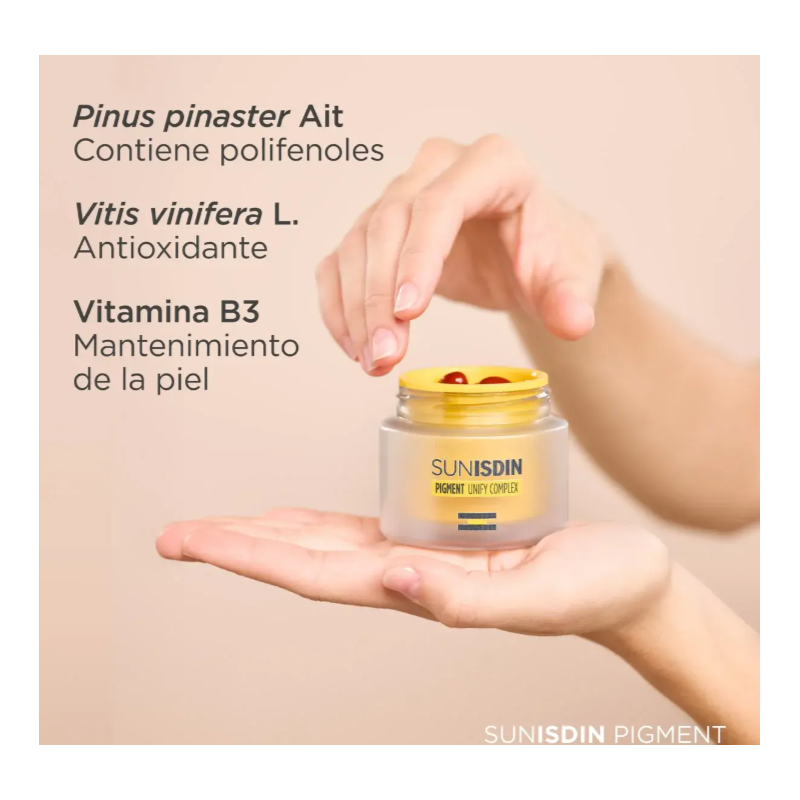 Con una sola cápsula al día, SUNISDIN Pigment es el aliado perfecto para quienes desean tratar y prevenir manchas solares de forma integral.
