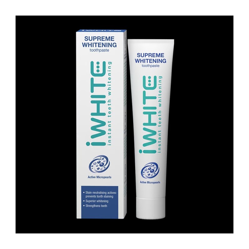 Disfruta de una sonrisa más blanca y brillante con la iWhite Pasta Dental Blanqueador Supremo 75 ml, tu mejor aliado para un blanqueamiento eficaz y seguro.