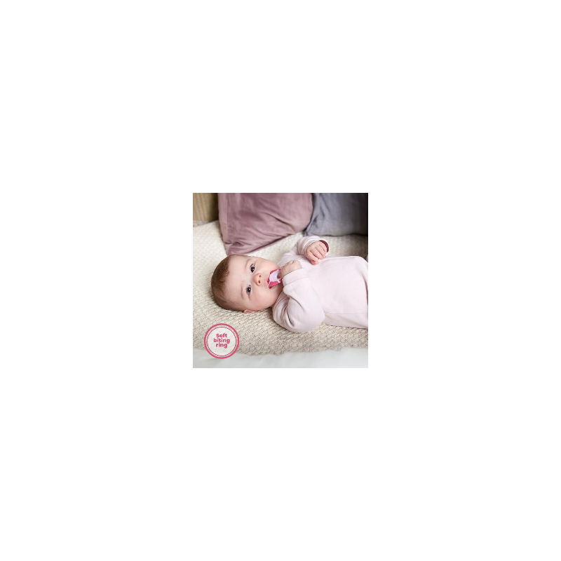 Cepillo dental para bebés de 0 a 2 años con cerdas extra suaves y mordedor integrado para una higiene delicada y divertida.