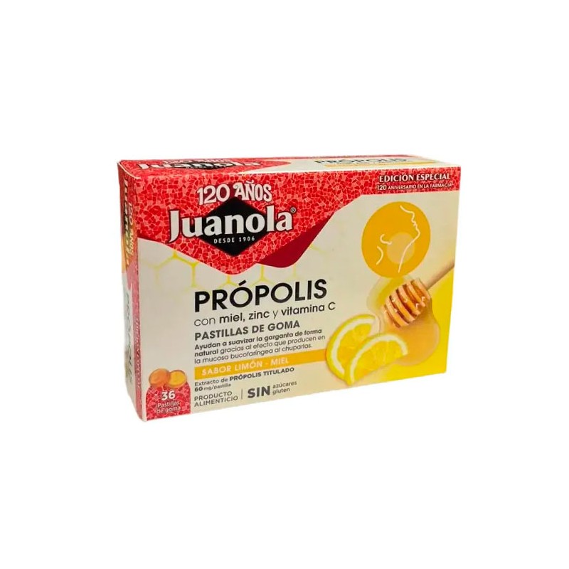 JUANOLA PASTILLAS DE GOMA SABOR LIMON MIEL CON PROPOLIS MIEL ZINC Y VITAMINA C 36 PASTILLAS