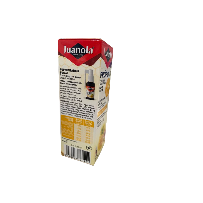Juanola Propóleos Pulverizador Bucal 30 ml es un spray oral natural que proporciona alivio inmediato a la garganta irritada. Con la acción del propóleo, esta fórmula ayuda a calmar la garganta, reducir la inflamación y proteger las mucosas bucales, siendo ideal para tratar molestias como la sequedad o picazón.