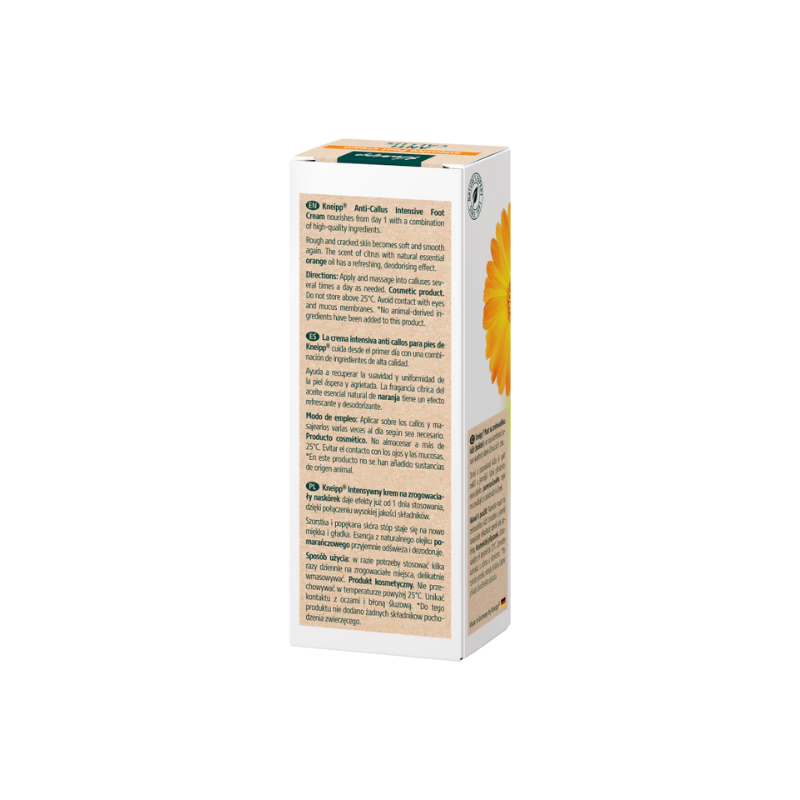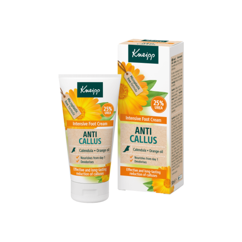 Más informaciónKneipp Intensive Foot Cream Anticallus es un tratamiento específico para el cuidado de los pies con callosidades, durezas o zonas secas. Formulada con urea en alta concentración, hidrata intensamente, suaviza la piel engrosada y facilita la reducción de asperezas.