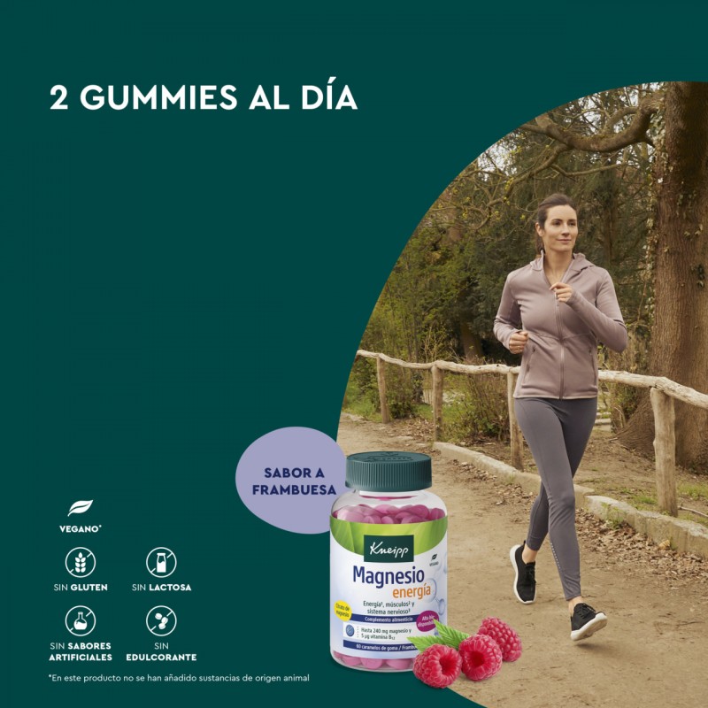 Kneipp Magnesio Energía es un suplemento en forma de caramelos de goma con un delicioso sabor a frambuesa, ideal para quienes buscan potenciar su energía diaria. Cada paquete contiene 60 caramelos que combinan la eficacia del magnesio con un sabor agradable, facilitando su consumo en cualquier momento del día. Este producto está especialmente formulado para ayudar a reducir la fatiga, mejorar el rendimiento muscular y promover un equilibrio emocional, gracias a la acción del magnesio en el organismo. Su formato práctico y sabroso lo convierte en una opción conveniente para mantener los niveles de energía y bienestar en tu rutina diaria.