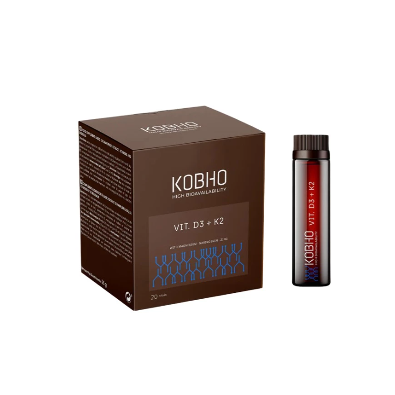 KOBHO Vitamina D3 + K2 es un suplemento nutricional formulado con vitamina D3 (colecalciferol) y vitamina K2 (menaquinona-7), dos nutrientes clave que actúan de forma sinérgica para promover la fijación del calcio en los huesos y evitar su acumulación en arterias u otros tejidos blandos.