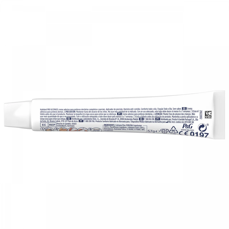 Kukident Pro Ultimate Crema Adhesiva Sin Sabor está diseñada para proporcionar una fijación superior y de larga duración en prótesis dentales completas o parciales. Su fórmula avanzada forma una barrera protectora que ayuda a evitar la filtración de restos de alimentos, garantizando una sensación de seguridad y confort al comer, hablar o sonreír.